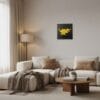 Au centre d’un fond noir lisse, un lac d’or métallisé semble émerger, comme une respiration lumineuse au cœur du silence. Ce contraste capte le regard et invite à la contemplation, tout en diffusant une énergie positive dans la pièce.